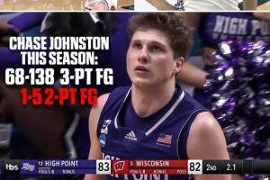 本场比赛,海波特大学后卫蔡斯·约翰斯顿成为球队取胜功臣,值得一提的是身为三分球专家的他本场比赛前赛季三分132投64中,两分却是4中0,本场比赛过后,三分变成138中68,两分5中1,而这唯一的两分球就是最关键的上篮绝杀(此前追到只差1分的三分球也是他投的)!