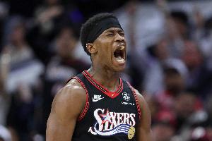 此役,76人探花秀埃奇库姆出战41分55秒,投篮16中7,三分5中1,罚球5中4,得到19分11篮板1助攻1抢断。