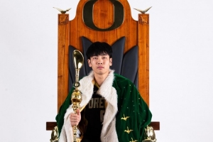 体育资讯3月12日讯 留洋球员张博源更新社媒,晒出了此前正式访问俄勒冈大学时拍摄的访校定妆照。