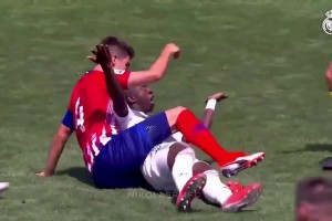 下一篇: 于帕梅卡诺趴在维尼修斯身上时咧嘴大笑,下方的维尼修斯吓坏了